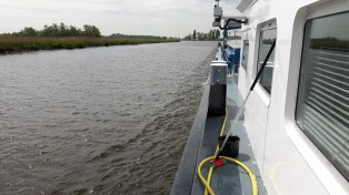 Een echte poetsdag vandaag. Van 8 tot half 6 ben ik op het achterdek in de weer met waterslang, bezem en sop. De naweeën van het Chinaklei dat we gisteren in Delfzijl losten. Dat fijne goedje is in alle kieren en naden gaan zitten, en laat zich niet zo eenvoudig verwijderen – bij contact met water wordt het niet alleen een papje, maar, daarmee, ook een glibberige bedoening. Goed oppassen dus, zeker met mijn oversized regenlaarzen en een waterslang die door de hoge waterdruk een eigen leven probeert te leiden. Ik krijg het bovendien maar niet voor elkaar (maar mogelijk is het ook gewoonweg niet te doen) mijzelf niet keer op keer op een koude douche te trakteren. Telkens als ik het water in hoeken spuit dus. Het leven op het water is nat, of het regent of niet.
